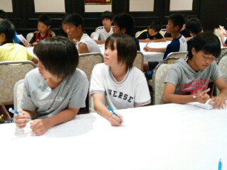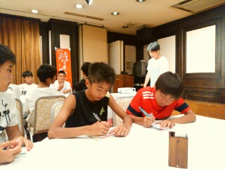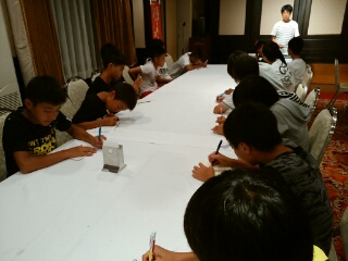 恒例の夏合宿初日。今夏は、10年振りに遊園地&TRMの組み合わせで行ってみたが、初日は予想以上にファルベンイレブンが楽しそうだったので大成功と言って良いだろう。 卒業記念DVD撮影の関係で、午前は3年生だけ一緒に行動してもらったが、「やっぱり第16期生は仲良しで素敵だな~」と心から思った(同じ空間に居るだけで幸せだった)。 その後は自由行動であったが、1年生から3年生までごちゃ混ぜで楽しんでいた事に関しても、「ファルベンらしくて良いな~」としみじみ感じた(この関係は本当に素敵だと思う)。 しかし、この計画は、チームワークを深めてその力を試合で発揮する為のものなので大切なのは明日である。引退試合&『U-13』に自信を持って臨める2日目にしてほしい。 |