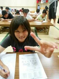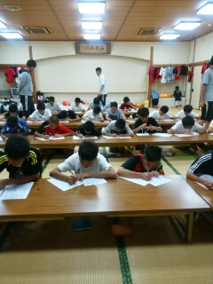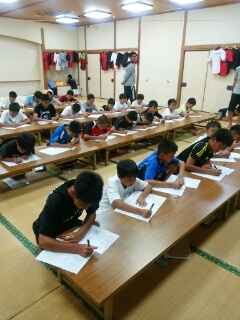 只今、テスト中。70点以下は罰ゲーム。トップは誰か?最下位は誰か?発表は明日のミーティングの予定であるが、試験中にポーズを取っちゃう選手は厳しいかな~。